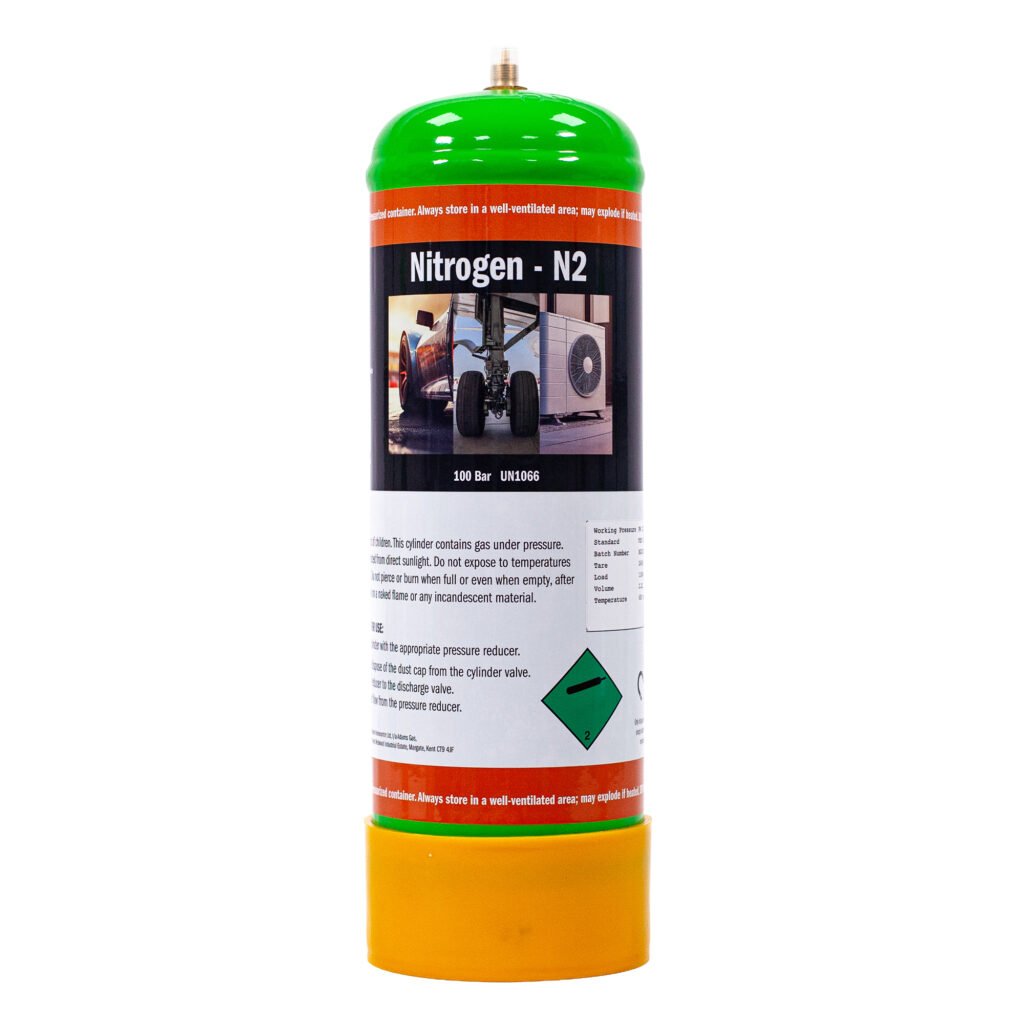 Nitrogen (N2) disposable gas bottle cylinder for plumbers and air con installers 2.2L – M10*1RH